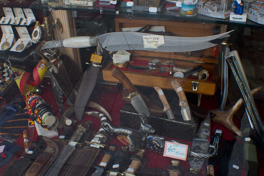 К тому же напротив кафе был магазинчик, где продавались ножи-кинжалы! Мне хазбенд заказывал нож, так как он собирает коллекцию! Знаменитая на весь мир толедская сталь - выбор предстоял непростой!